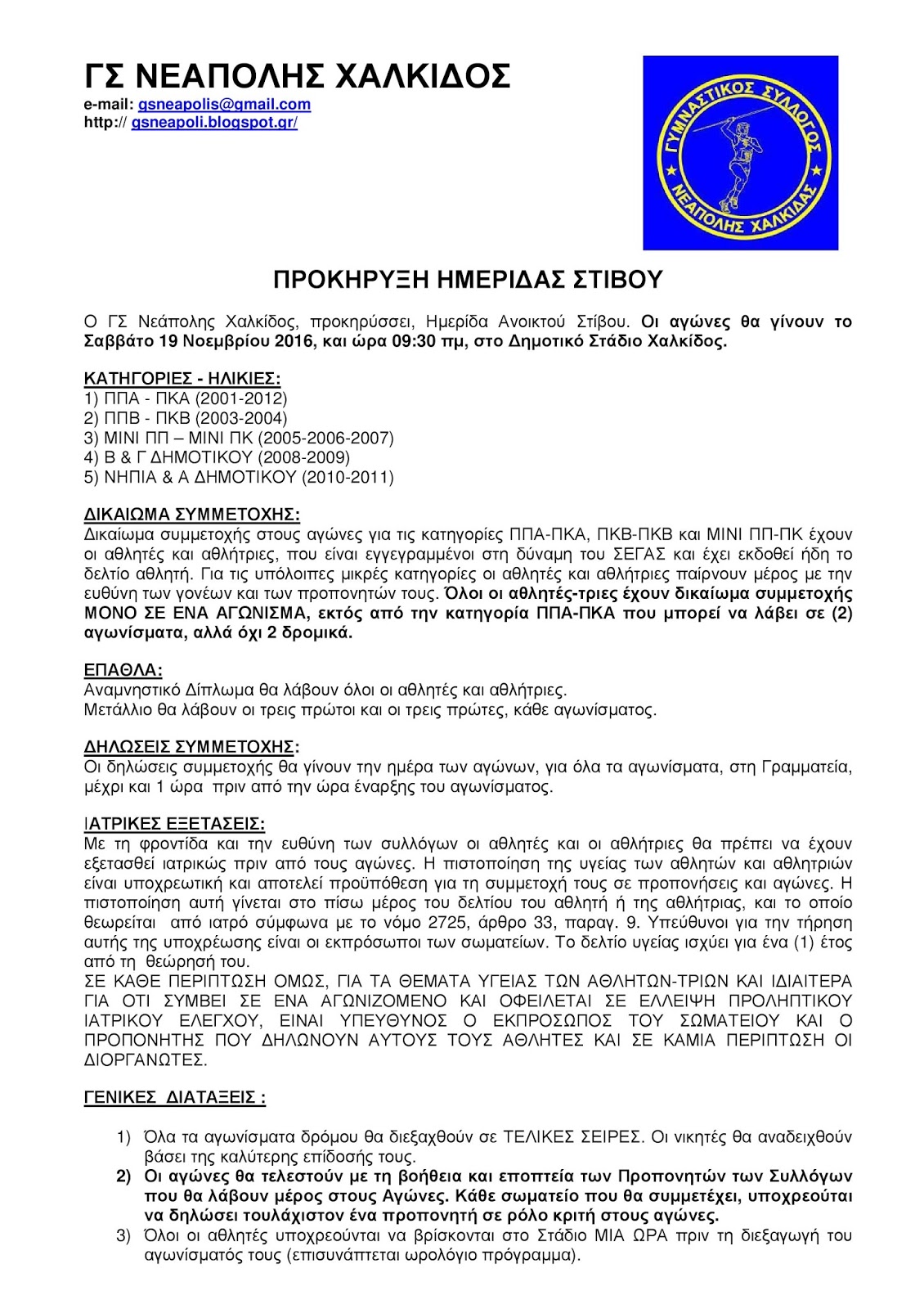Προκήρυξη Ημερίδας Στίβου του Γ.Σ. Νεάπολης