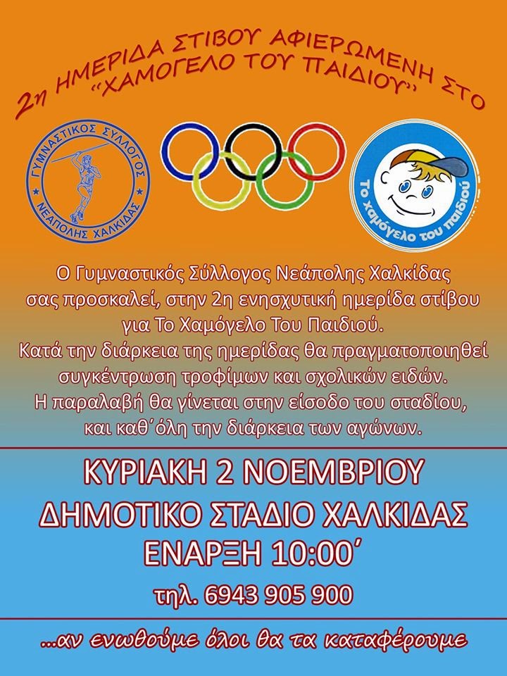Με επιτυχία πραγματοποιήθηκε την Κυριακή 2 Νοεμβρίου για δεύτερη συνεχή χρονιά, η ενισχυτική ημερίδα που διοργάνωσε ο Γυμναστικός Σύλλογος Νεάπολης για το Χαμόγελο του Παιδιού.