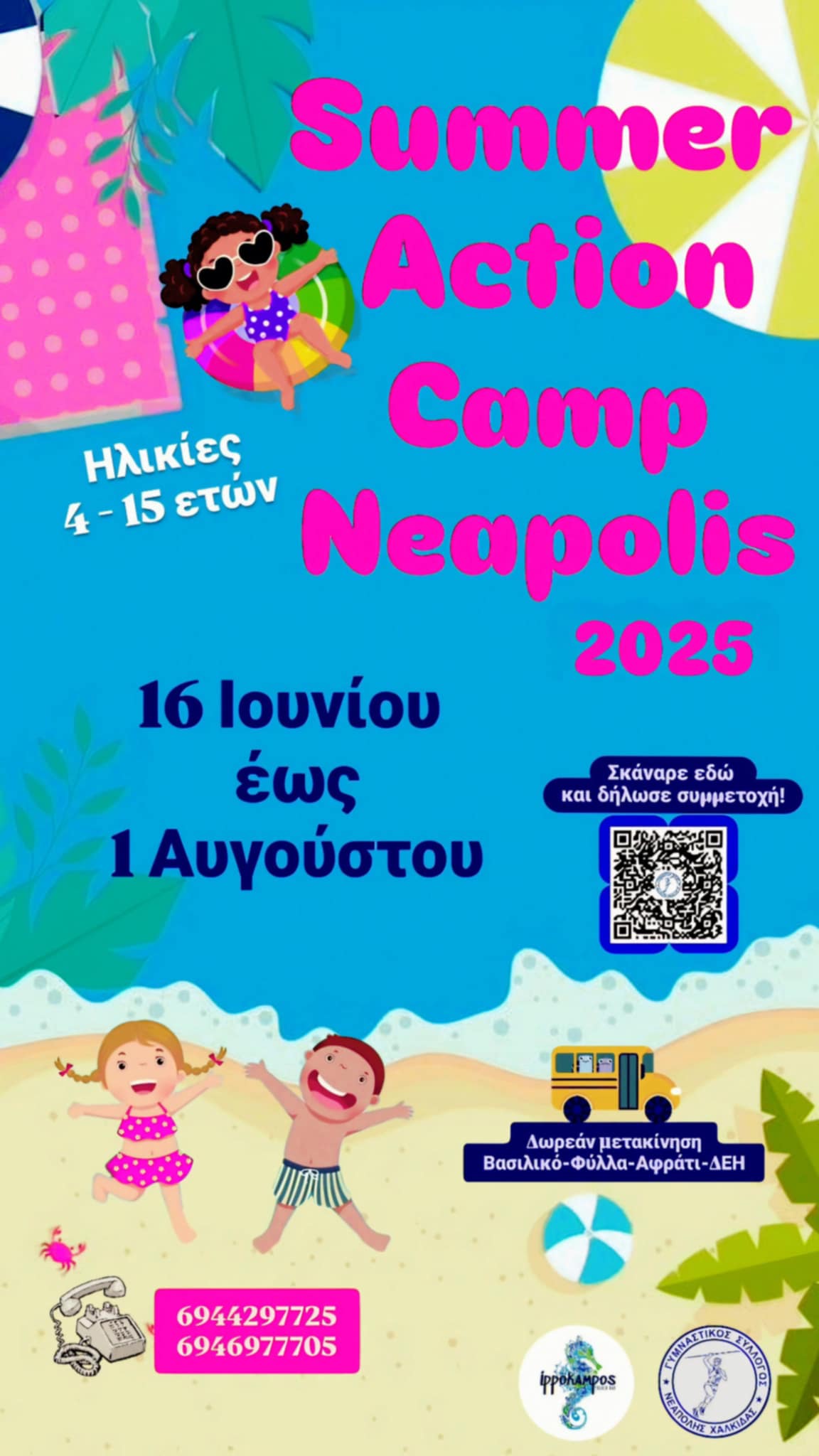 Για 4η συνεχόμενη χρονιά, ο Γ.Σ. Νεάπολης Χαλκίδας προσκαλεί τα παιδιά να ζήσουν ένα αξέχαστο, γεμάτο δράση και δημιουργικότητα καλοκαίρι!